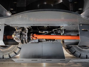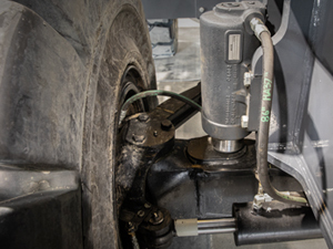 The oscillating front axle provides better ground contouring when driving while aligned and auto-locks when upper is swung to either side.