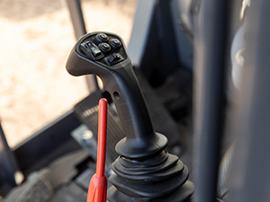 The configurable joysticks steer the machine, making operation simpler while also increasing visibility.