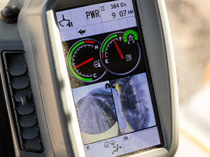 Standard cameras on three sides reduce operator blind spots, and a dedicated view screen gives you the option to see all views at once or toggle between them individually.