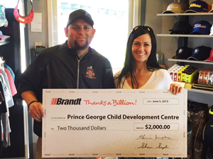Brandt has donated $2000 to the Prince George Child Development Centre. Proceeds go towards helping children through services that promote the balanced development of their social, emotional, physical, cognitive, and communication skills. For more information on the Prince George Child Development Centre, visit