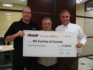 Brandt has donated $1,000 to the Johnson MS Bike Tour in support of the MS Society of Canada. The 2013 Edmonton tour was held on June 8th and 9th where cyclists travelled from Leduc to Camrose (approximately 72 kms). Proceeds from MS Bike fund vital MS research, programs and services that enable those affected by MS.
