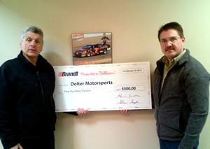 Brandt has donated $500 to the Dolter Motorsports race team.