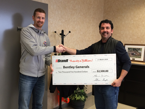 Brandt has donated $2,500 to the Bentley Generals. Proceeds went toward support for the journey towards the Canadian Men's Senior AAA Hockey Championships.