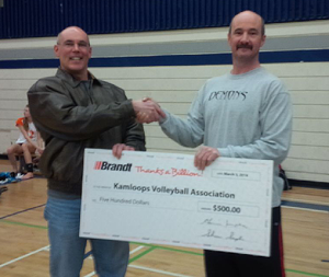 Brandt has donated $500 to the Kamloops Volleyball Association.