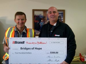 Brandt donates $500 to The Bridges of Hope Classic.