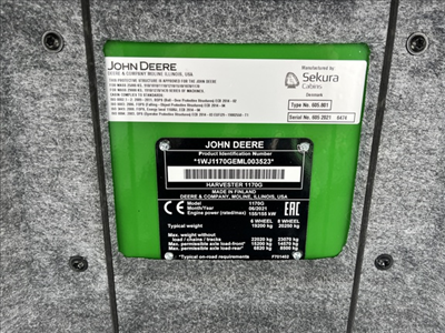 2021 John Deere 1170G w/ 13702hrs, ROTATING AND LEVELING CAB W/ AC; BOOMS: 36.1 FT / 11 M; FIRE SUPPRESSION