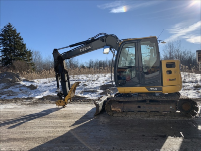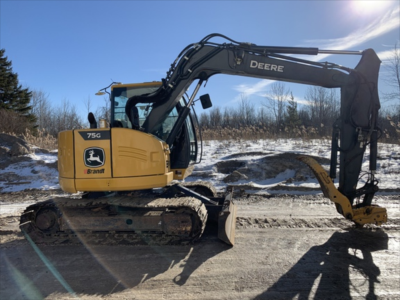 Cab w/ AC, Cntrl Pattern Select; Long Arm; Standard Boom; Wide Pads; 24" Pads; Aux Hydraulics, Blade, Coupler, Hydraulic Thumb; 30" Bucket
