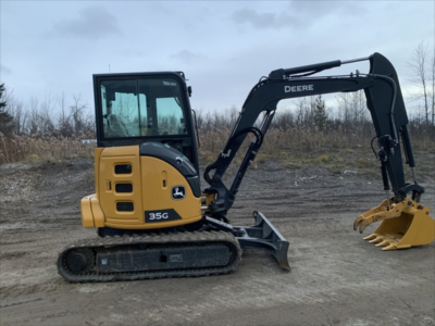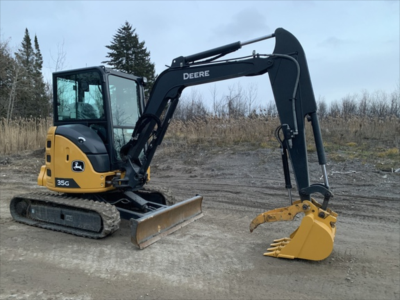Cab w/ AC; Long Arm; Rubber Tracks; 24" Bucket; Hydraulic Thumb