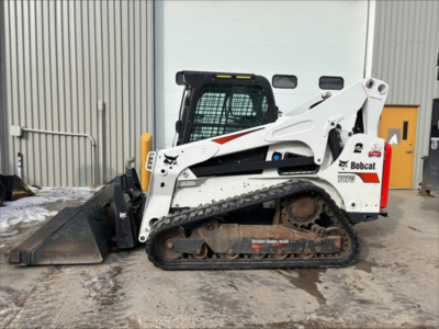 Cab w/ AC, ISO Pattern, H Pattern, EH Joystick Controls, Hi-Flo; Aux Hydraulics, Forks; Ride Control, 2 Speed; Rubber Tracks; 84" Bucket