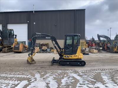Cab w/ AC; Standard Track; 24" Bucket; Aux Hydraulics, Hydraulic Thumb; w/ Blade