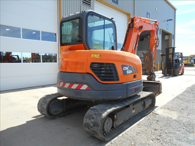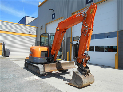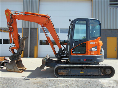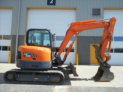 Cab w/ AC; Medium Arm; Standard Track; 30" Dig Bucket; 48" Ditch Bucket; Aux Hydraulics, Blade, Hydraulic Thumb; Hydraulic Pin Grabber Coupler
