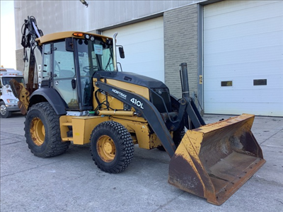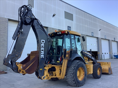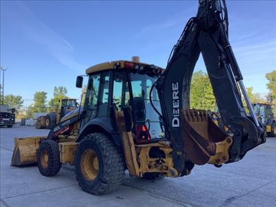 ROPS, Cab w/ AC, 2-Lever Mechanical; Turbo, 4X4 Power Shift Tran, Ride Control; Extendible Dipper; Aux Hydraulics, Front Coupler, Quick Coupler; Multi-Purpose Bkt; 21L Tires