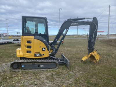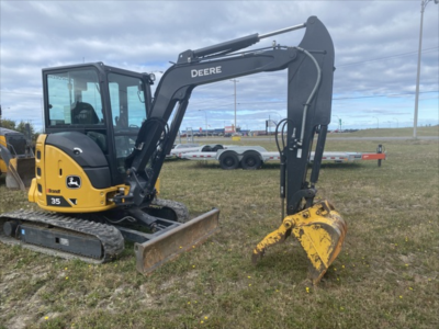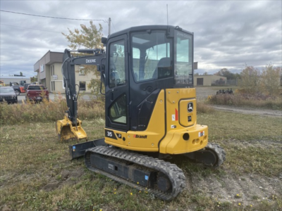 Cab w/ AC; Long Arm; Rubber Tracks, 12" Rubber Tracks; 24" Bucket, 34" Bucket; Aux Hydraulics, Blade, Coupler, Hydraulic Thumb; w/ Blade; Side Shift